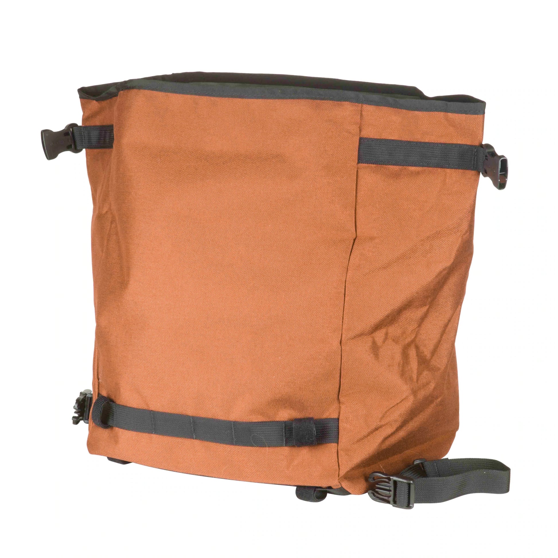 Il design roll-top si presta bene all'imbottitura con attrezzatura da campeggio o generi alimentari, ma può anche essere piegato per carichi più piccoli. Sebbene progettato per il nostro Portapacchi Porteur, si adatta abbastanza bene anche al cestino Wald 1372.