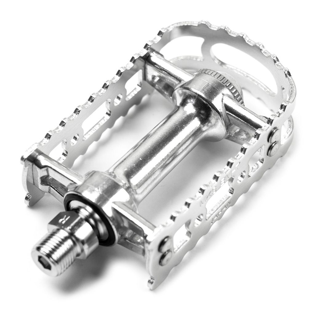 Questi nuovi pedali BM-7 hanno una pianta più larga e gabbie più grandi per l'uso in fuoristrada. Ottimi pedali per vecchie MTB, vecchie BMX. Bello anche per le bici a scatto fisso grazie alla compatibilità dei fermapiedi.